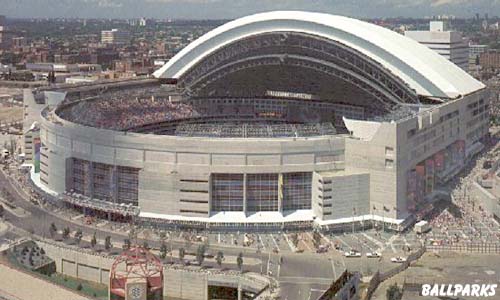 - Rogers Centre's playing field area is covered with 106 rolls of Astroturf, which is held together with 12.8km of zippers.